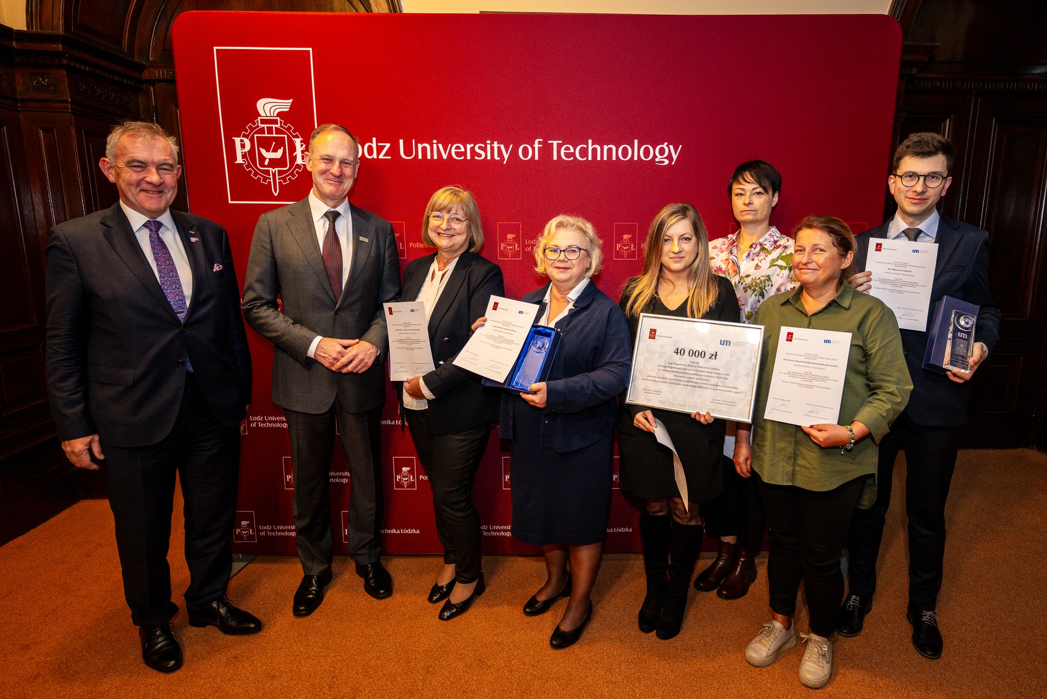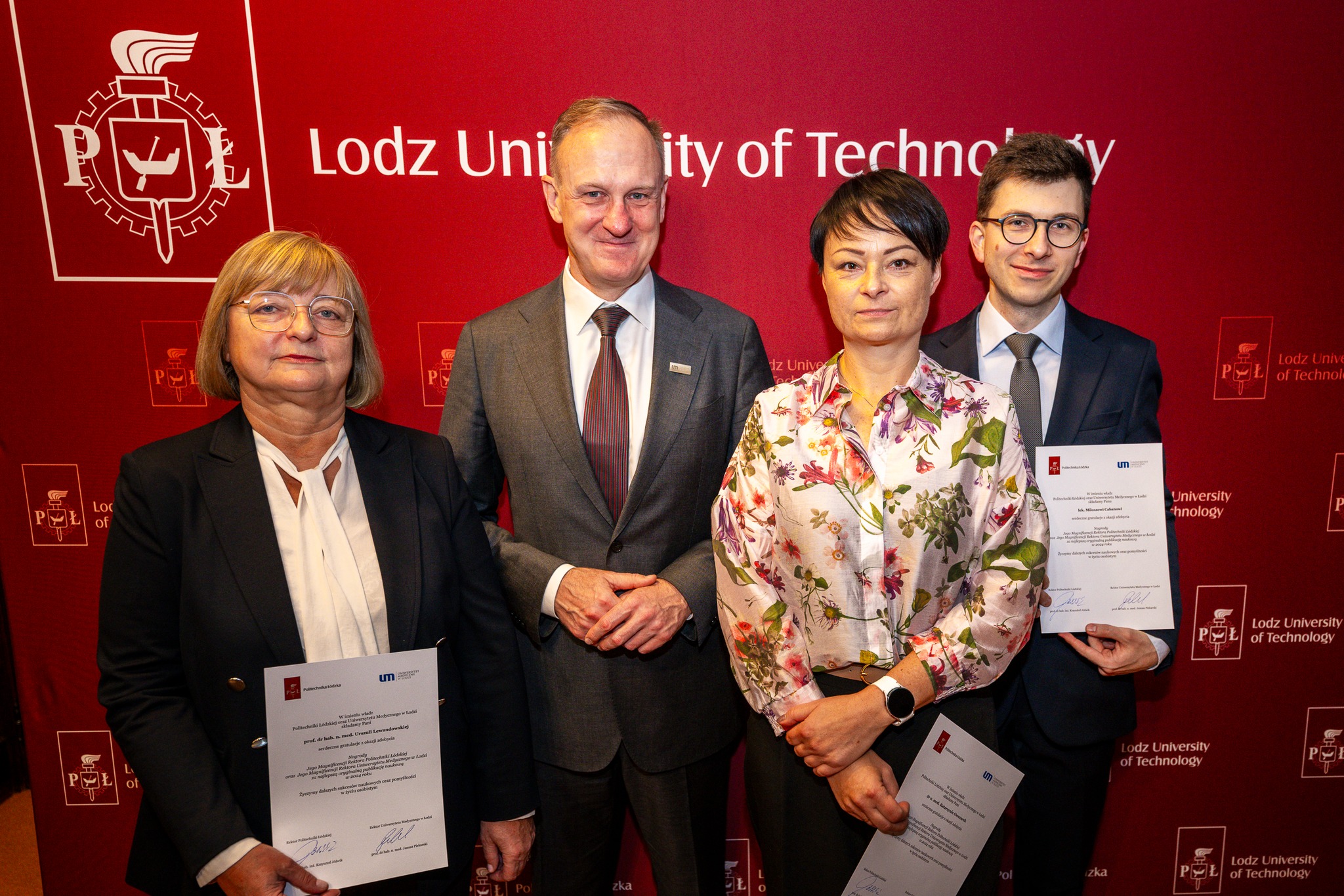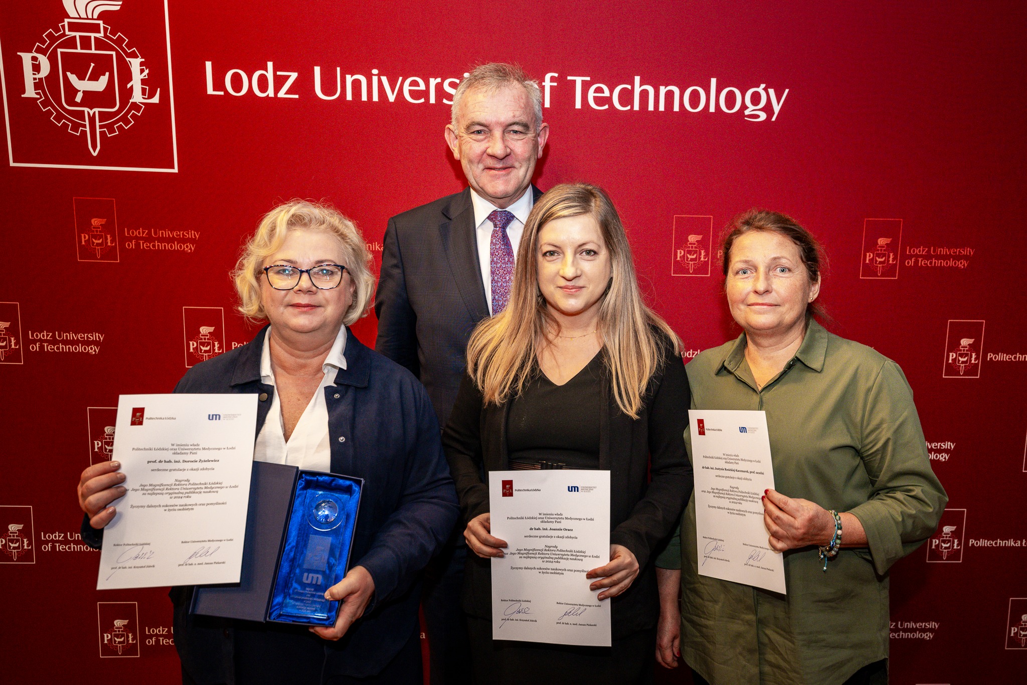 Rektor Politechniki Łódzkiej oraz Rektor Uniwersytetu Medycznego w Łodzi wręczyli nagrodę za najlepszą publikację naukową opracowaną wspólnie przez pracowników obu uczelni.
